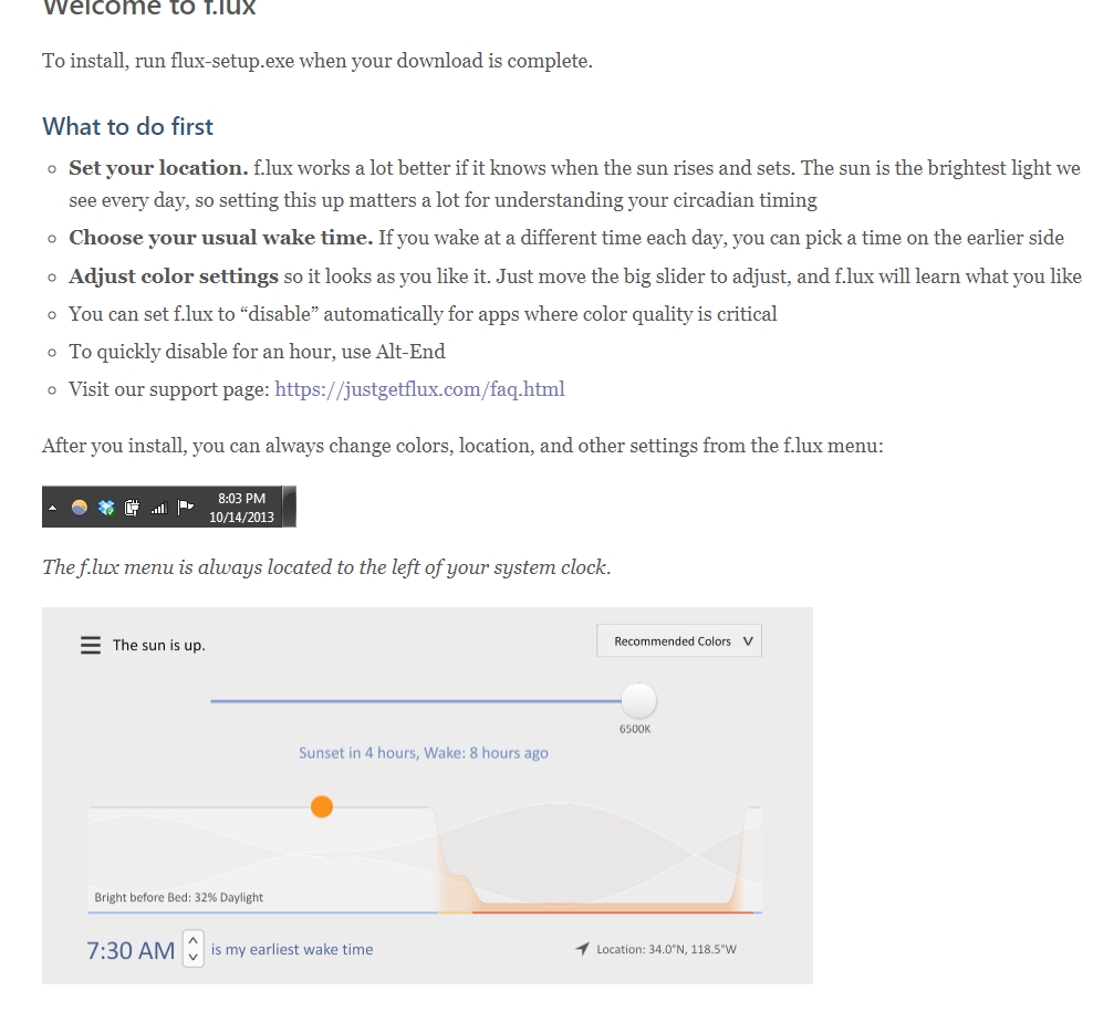 - 특정 게임이나 프로그램에서 f.lux가 제대로 작동하지 않을 수 있습니다.